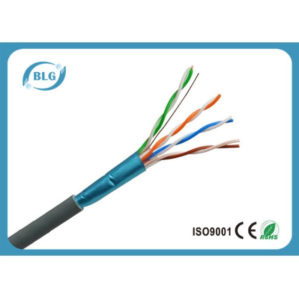 Indoor 4 * 2 * 24AWG / 26AWG BC / CCA FTP Cat5e Cable, HDPE Insulation, Polyester Tape, Drain Wire, Al Foil Shielded, Ripcord, PVC / LSZH Jacket